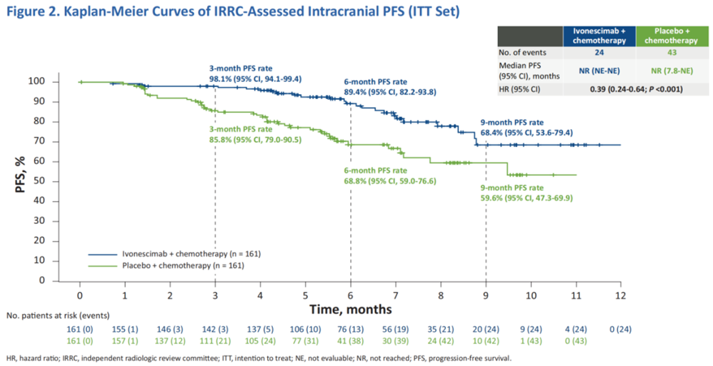 3HARMONi-A研究ITT人群颅内PFS结果