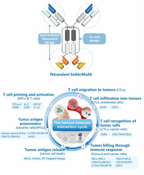 Using our unique Tetrabody technology, we have successfully developed 15+ innovative, world-leading BsAbs, MsAbs, BsADCs, ADCs, and TCEs, including开坦尼® (PD-1/CTLA-4 bispecific antibody, Cadonilimab injection),依达方® (PD-1/VEGF bi-specific antibody,Ivonescimab injection) and AK130,etc. 开坦尼® is the world's first commercialized dual immune checkpoint inhibitor bispecific antibody to treat cancer.  依达方®  is the world's first PD-1/VEGF bispecific antibody drug; and AK130 is the world's first and only TIGIT/TGF-β dual-targeting antibody fusion protein in research. This results fully demonstrate the strength of Akeso's innovative development strength and its leading position in the field of bispecific antibodies.